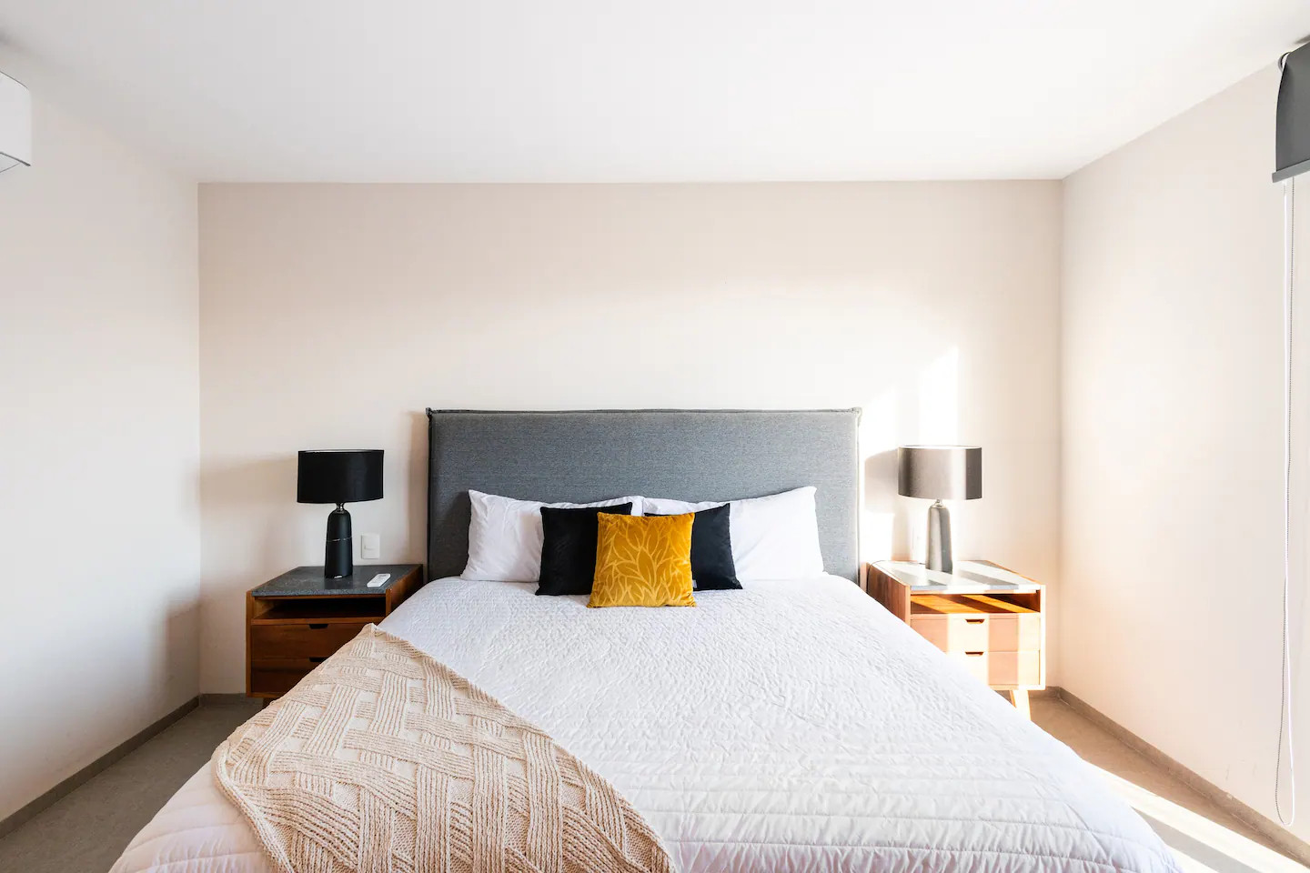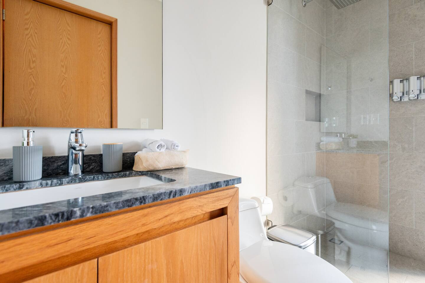 Este departamento 201 cuenta con cocina totalmente equipada, comedor, sala, cuarto de lavado, y dos baños completos, uno de ellos dentro de la habitación principal la cuál tiene una cama king size, la segunda habitación también cuenta con una cama king size y un espacioso clóset.