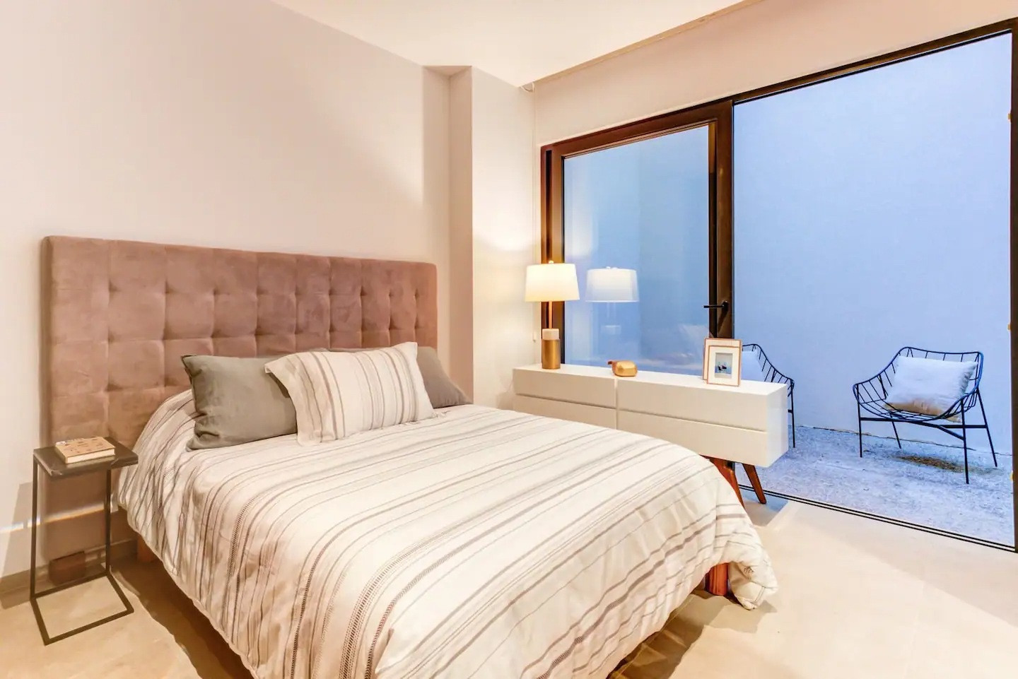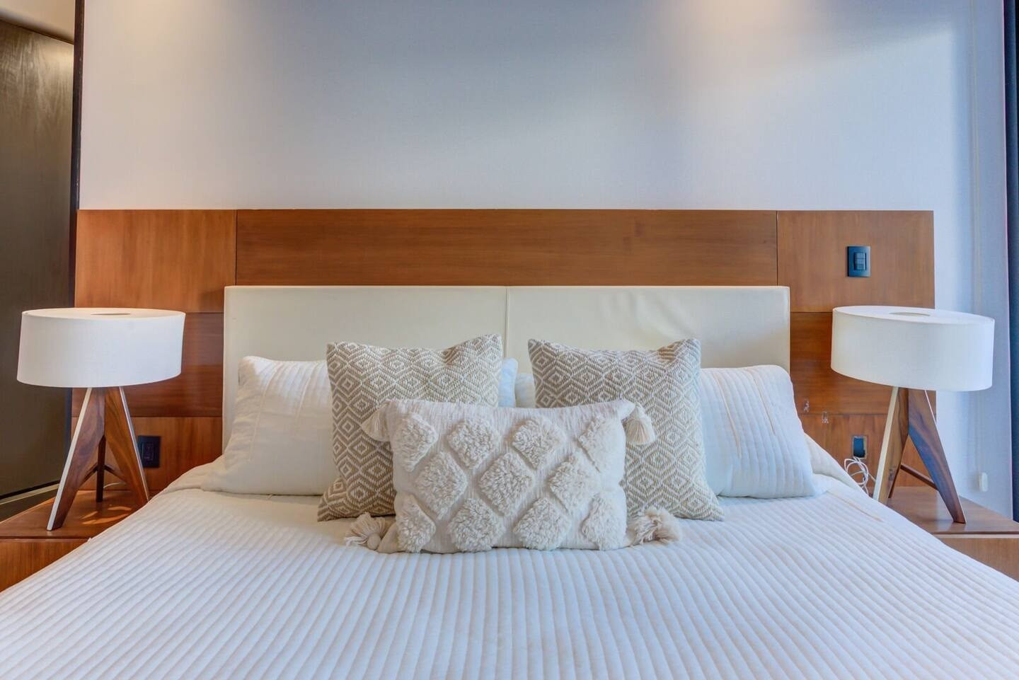 Este acogedor departamento 801 de dos recámaras, cada una equipada con una cama king size, está diseñado para brindar comodidad y funcionalidad en cada rincón. Cuenta con dos baños completos y está totalmente equipado para estancias cortas o largas: cocina integral, electrodomésticos, utensilios, aire acondicionado, WiFi, lavadora y secadora.