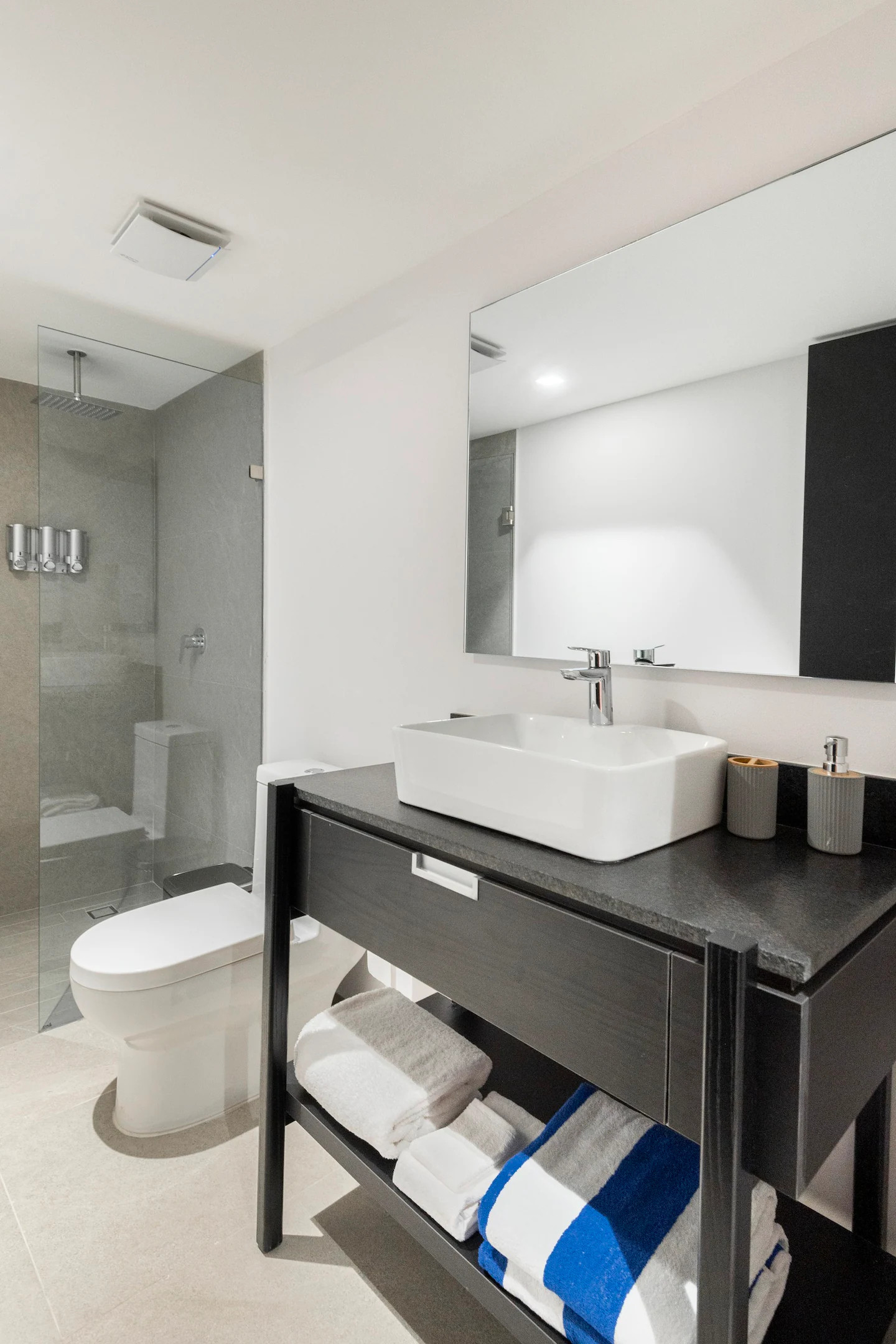 Welcome to Unit 205, a modern one-bedroom apartment featuring a King-size bed, full bathroom, fully equipped kitchen, and a stylish breakfast bar. Unwind on your private balcony with jacuzzi and enjoy the tropical breeze.